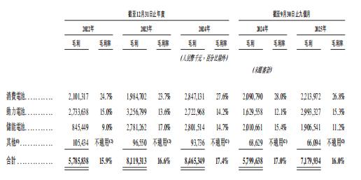业务毛利率也随之出现下滑迹象,由2023年的17.0%下降至2024年的14.7%。亿纬锂能对此在招股书中直言,平均售价下降除原料价格影响外,与“为提高竞争力及扩大市场份额所制定的战略定价”有关。