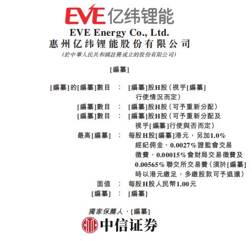 2026年1月2日,惠州亿纬锂能股份有限公司(下称“亿纬锂能”)向香港联合交易所提交更新后的上市申请书,独家保荐人为中信证券。