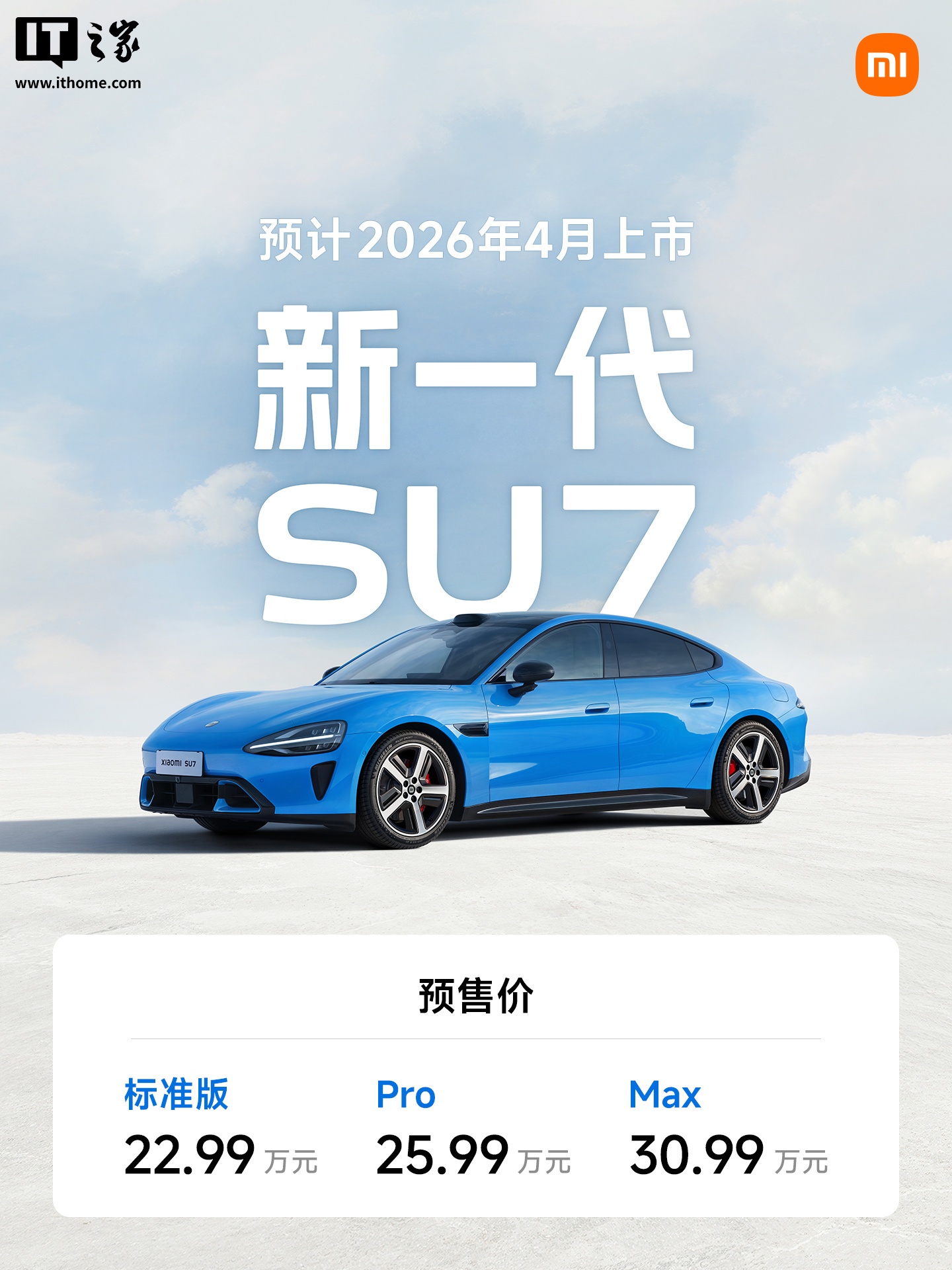 IT之家注意到,在外观设计方面,新一代小米 SU7 整体改动不大,延续了前代车型的设计,但新增了“卡布里蓝”配色。此外,新车还增加了 20 英寸锋刃轮毂。