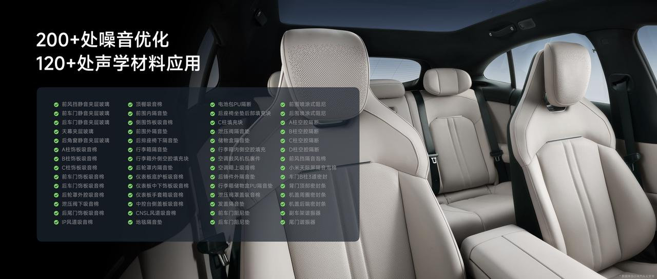 小米 YU7 全系静谧效果都非常出色,仅标准版就用了 120 多处声学材料,具体都分布在什么地方?