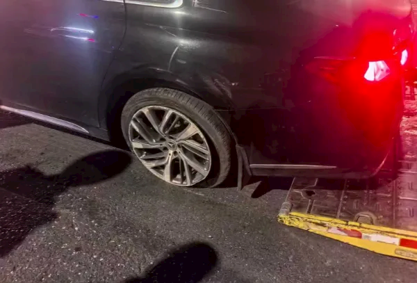 事故造成车辆左侧及前后两条轮胎受损,万幸的是事发当时车上就田某一人,在安全带的保护下身体无大碍。