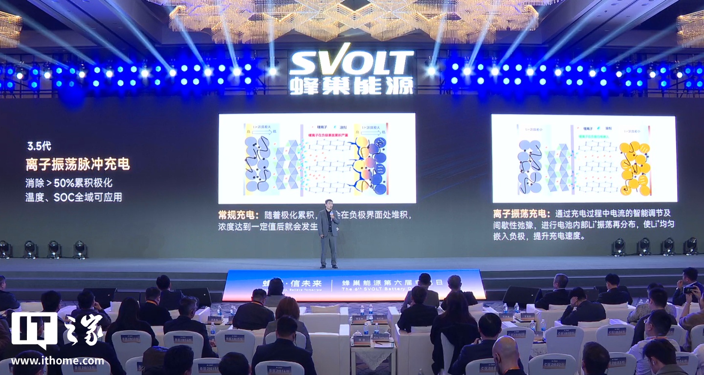 IT之家 1 月 13 日消息,在今日的蜂巢能源第六届电池日活动中,蜂巢能源官方发布了 3.5 代离子振荡脉冲充电技术。
