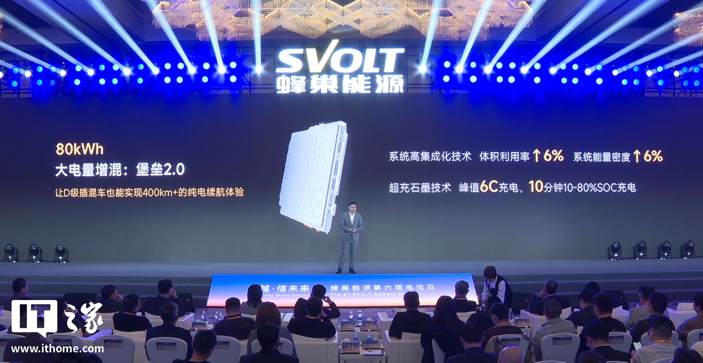 IT之家 1 月 13 日消息,蜂巢能源第六届电池日于今日在江苏常州召开,蜂巢能源针对全球家庭用车向大五 / 六座进阶带来的“大电量插混”需求推出了全球最大电量 80 kWh 插混电池包“堡垒 2.0”。