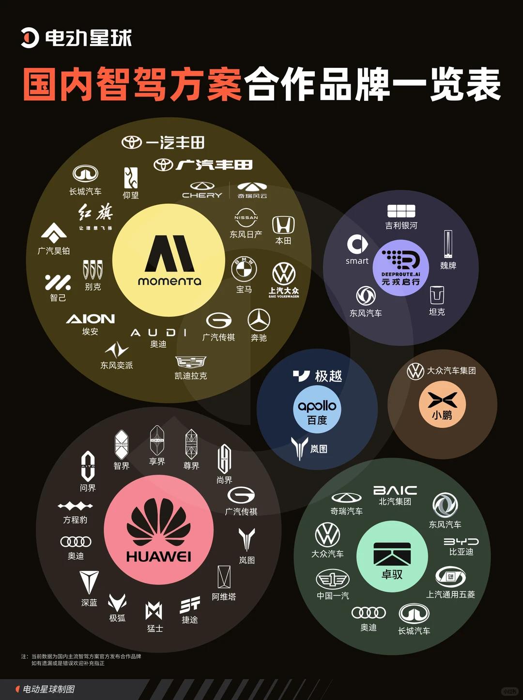 国内智驾方案合作品牌一览表,图片来源:电动星球