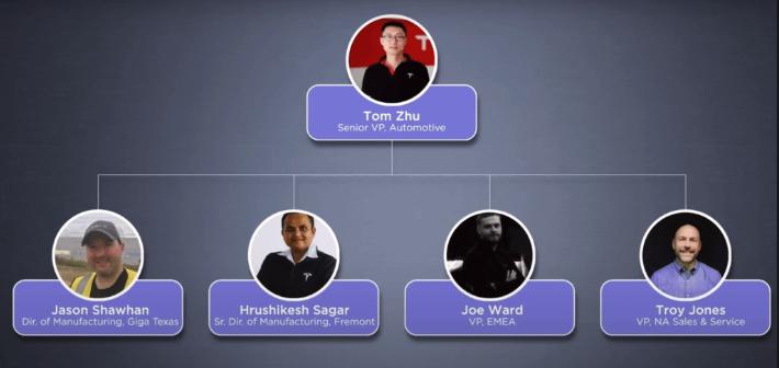 目前,朱晓彤(Tom Zhu)是特斯拉汽车业务高级副总裁(Senior Vice President, Automotive),同时负责亚太地区(APAC)业务,包括大中华区总裁的相关职责,以及全球制造和部分销售运营,负责监督特斯拉所有汽车工厂:上海、柏林、弗里蒙特和得克萨斯。