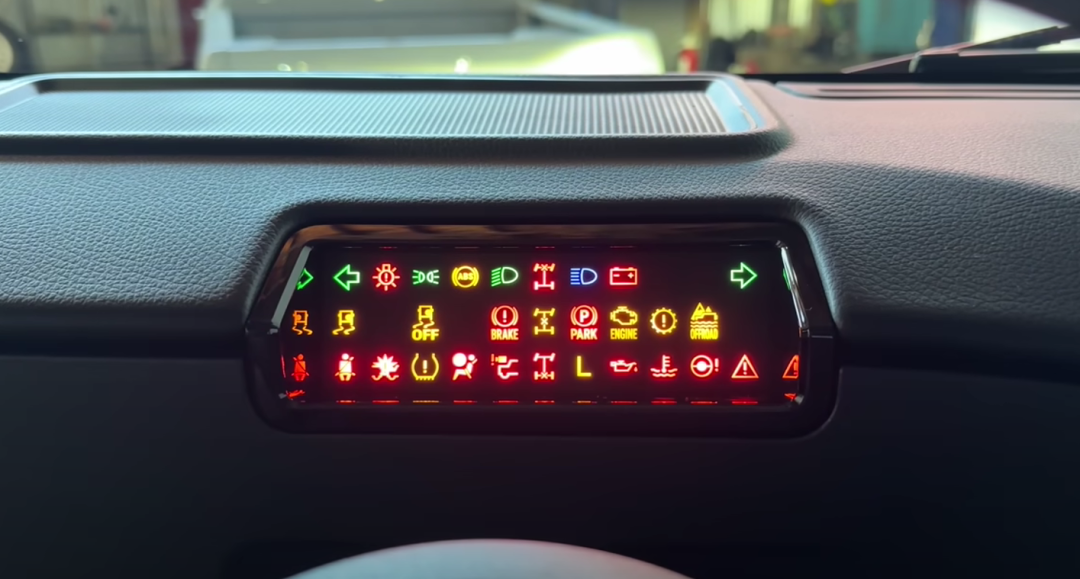 仪表盘设计也是非常独特,这车的时速显示跟特斯拉一样在中控屏幕上,仪表盘只负责显示当前车辆的状态,这个 “圣诞树” 每次上车自检的时候确实帅,甚至有种 《回到未来》 的机械感。