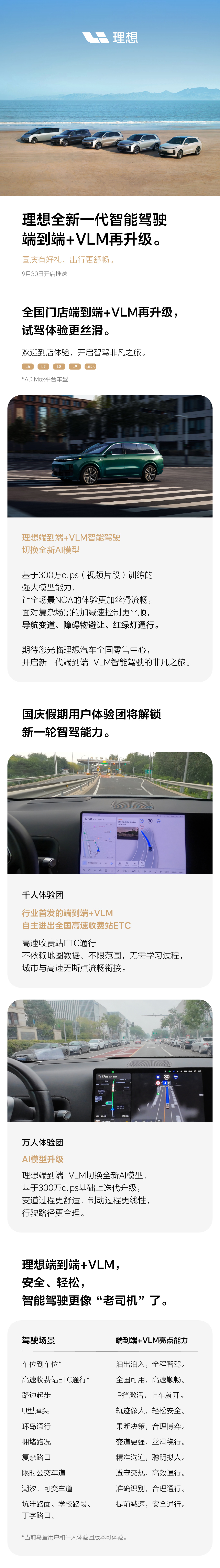 《理想汽车:全系车型门店试驾车升级为“端到端 + VLM”智能驾驶》
