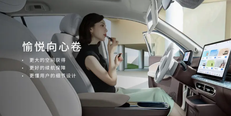 座舱方面,这款新车配备全液晶仪表盘、双辐式多功能方向盘以及悬浮式中控屏,搭载与科大讯飞、华为联合定制的钇为 OS 系统,支持 360 度全景影像功能。