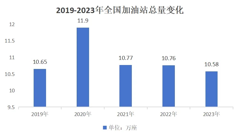 比如中国,根据《中国石油流通行业发展蓝皮书(2023-2024)》的数据,2023年全国加油站的总量约为10.58万座,同比减少了1800多座。自2020年数量达到巅峰之后,全国加油站的数量就开始持续下跌。