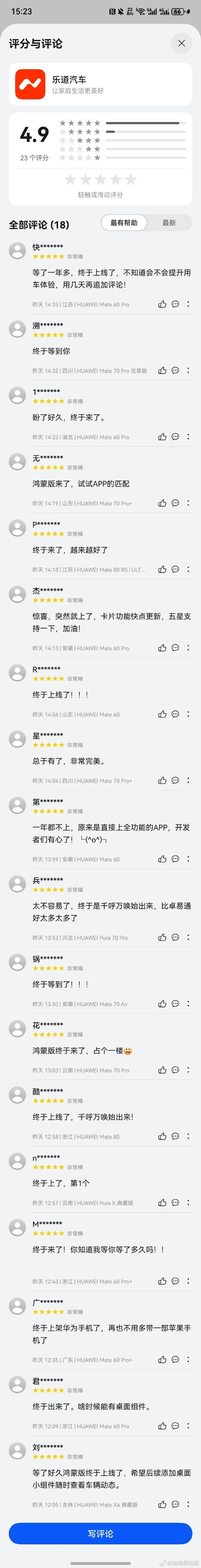 通过查询发现,蔚来三品牌仅差firefly萤火虫App暂未上线鸿蒙端,蔚来、乐道汽车App均已上线。