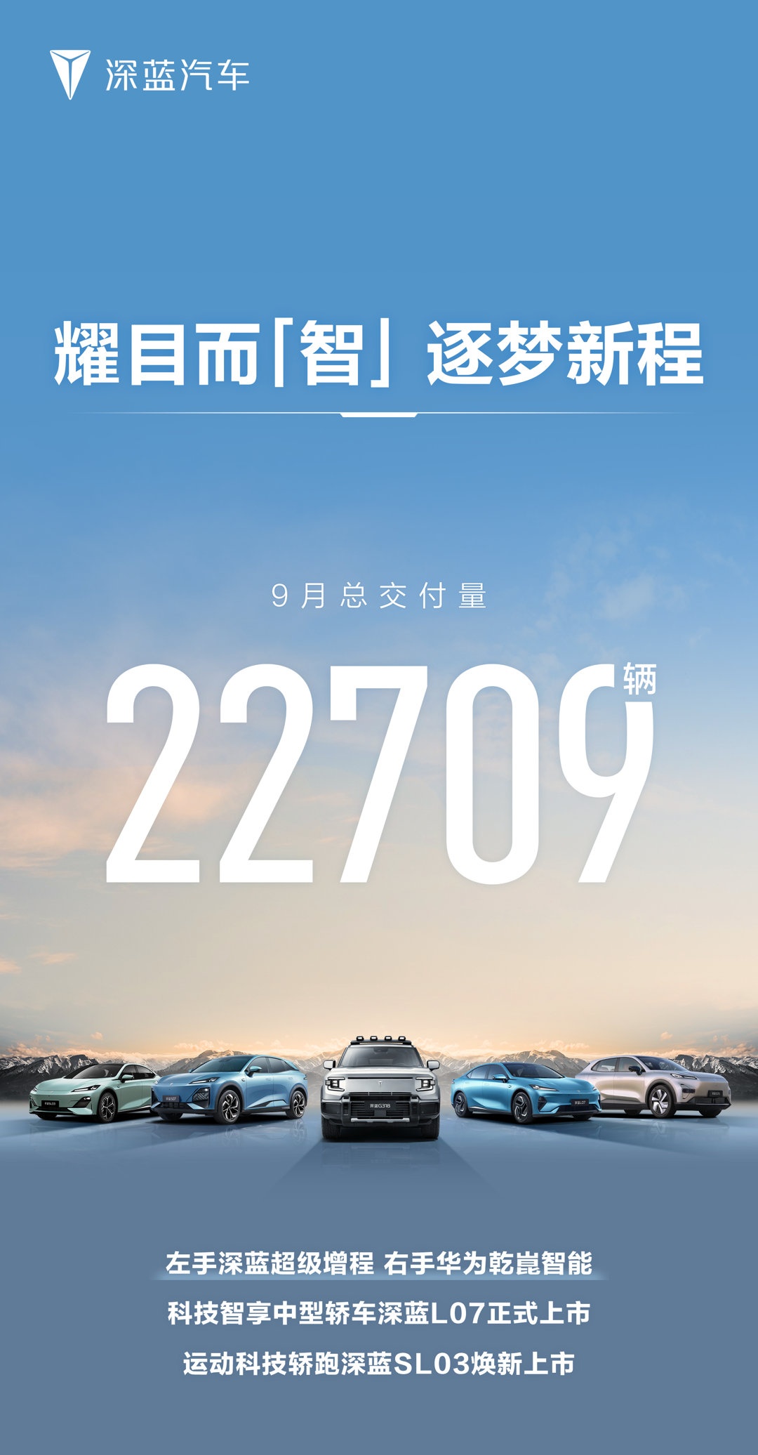 深蓝汽车:9 月交付新车 22,709 辆,同比增长 30.74%