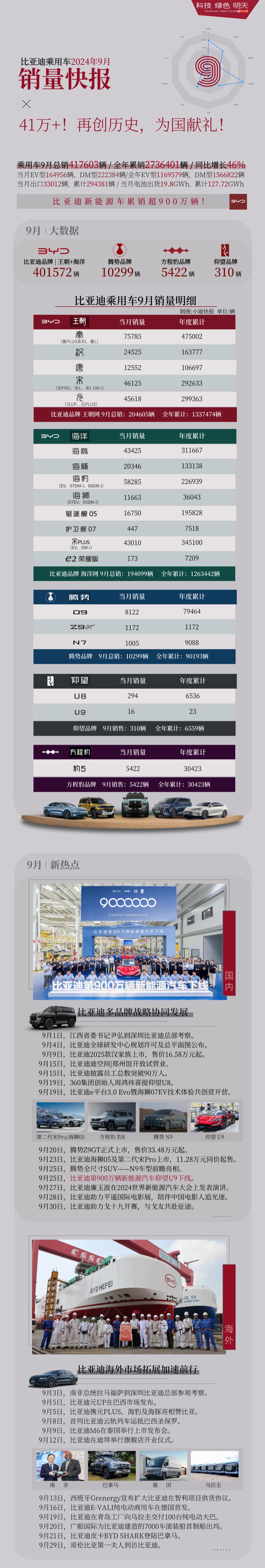 IT之家 10 月 1 日消息,比亚迪官方今日公布了 9 月最新的销量数据,随后博主“小迪快报”带来了具体销量明细。