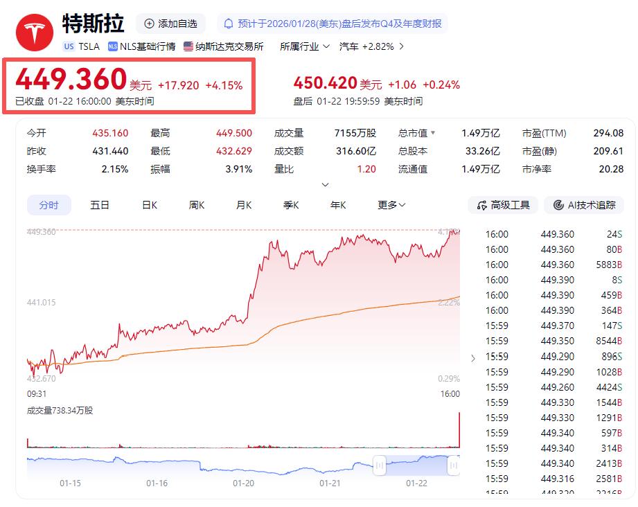 因此消息一出,特斯拉股价当天上涨了4.15%,总市值暴涨了596亿美元,折合人民币大约是4150亿元。