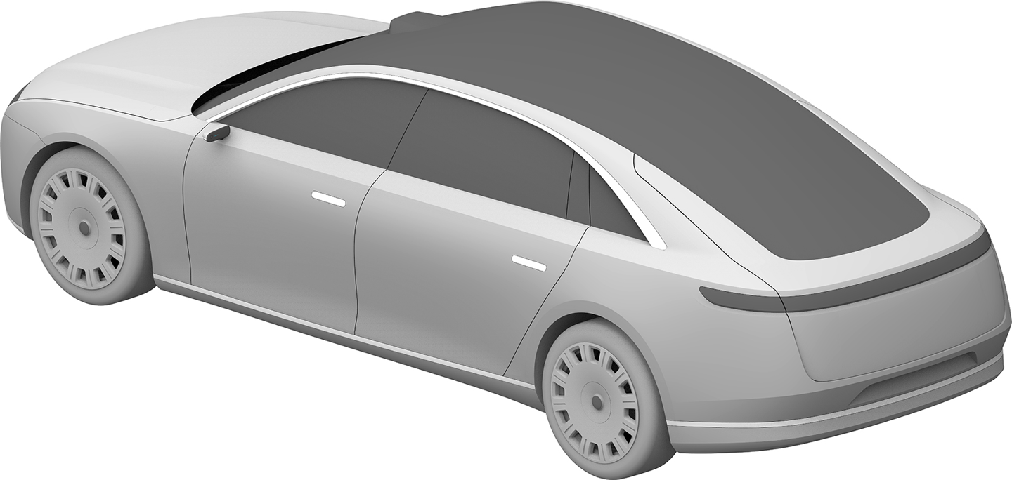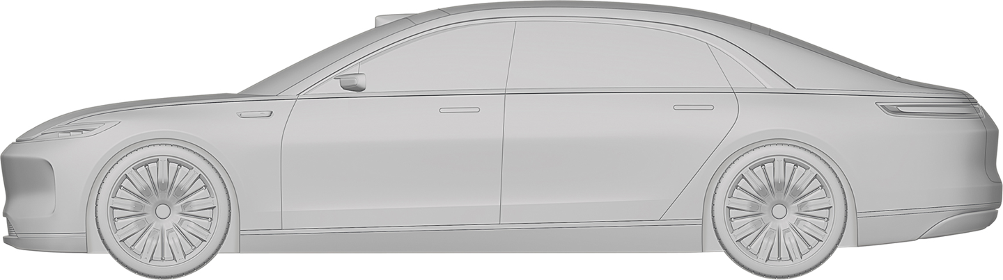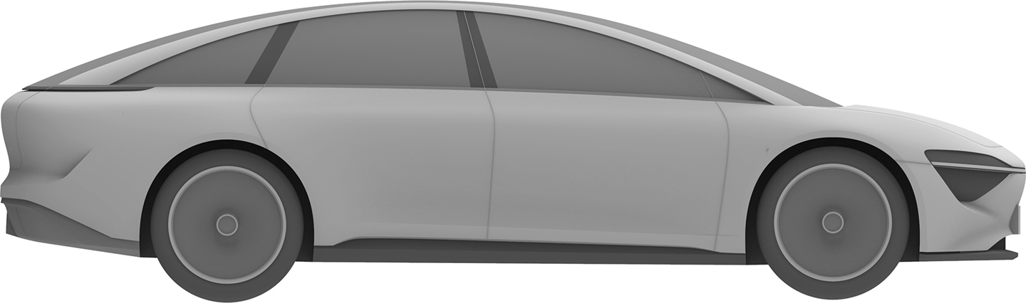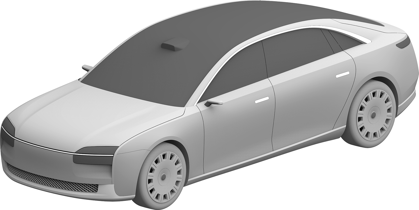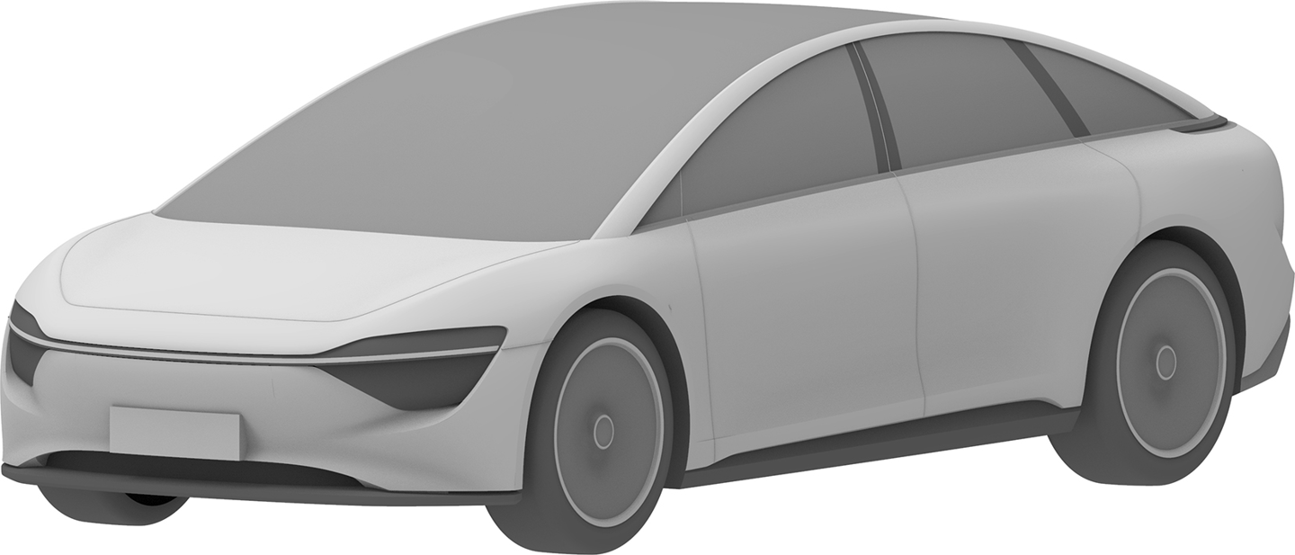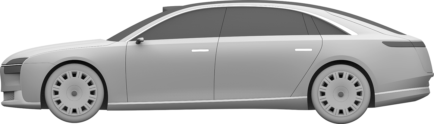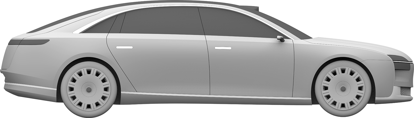 华为终端有限公司还在 2023 年 2 月 8 日申请了另一份汽车外观专利,这款车预计仍是一款“行政旗舰”,不过拥有与上图不同的前脸设计,向内凹进的中网更强调动感风格,并换装了传统后视镜。不过,舒展的车身线条和大尺寸轮毂依旧吸睛。