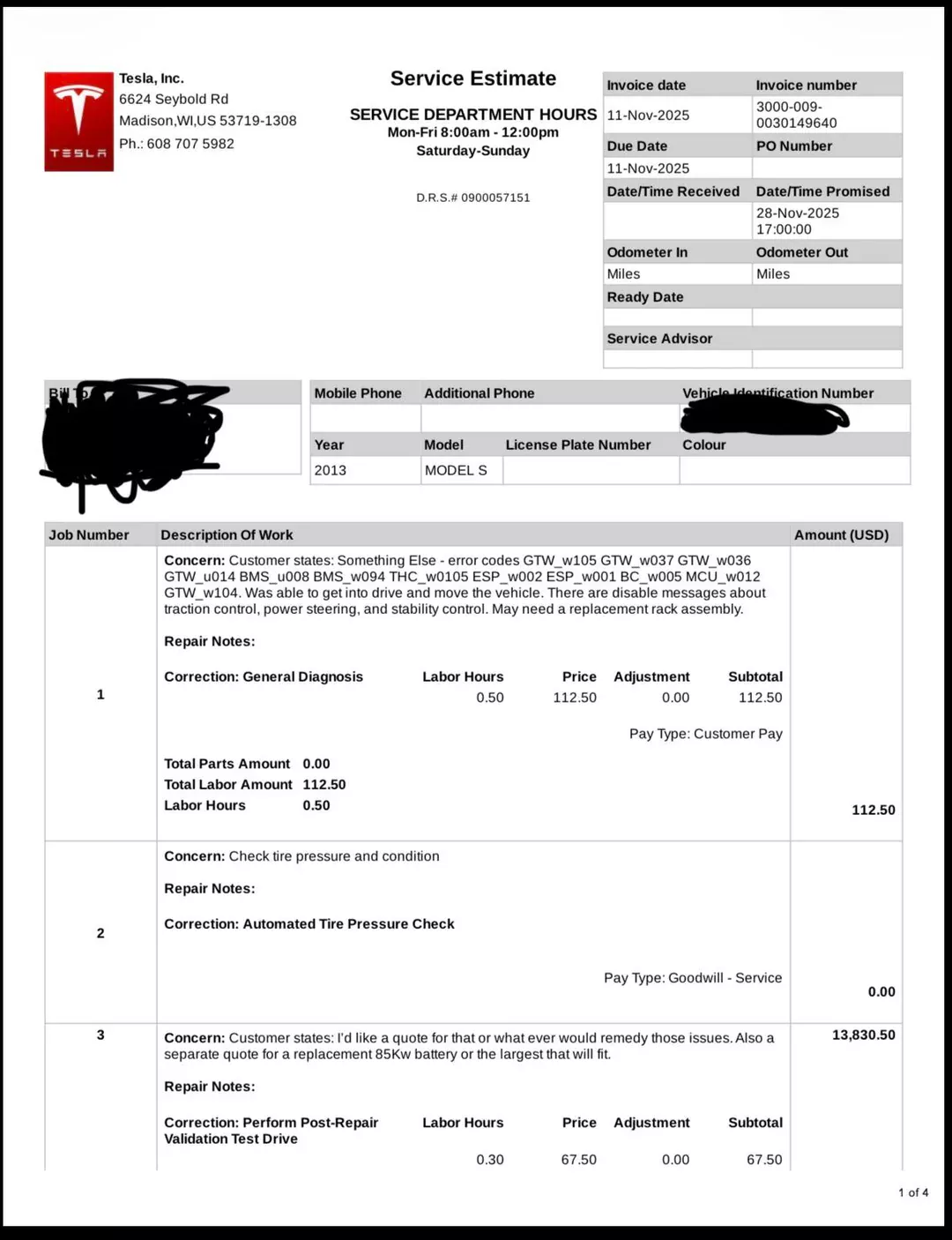 据悉,这名车主在 Reddit 平台发帖,披露了自己前往美国威斯康星州麦迪逊特斯拉服务中心的经历,其 Model S 车型电池遇到故障,特斯拉提供了“更换同款 60 kWh 电池,或升级为容量更大的 90 kWh 电池”两种方案。