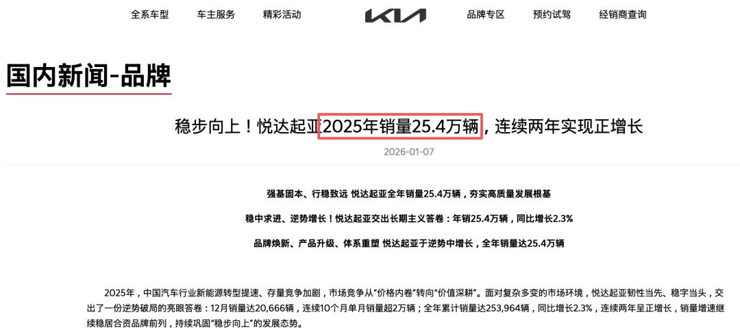 同样身处韩系阵营的起亚,也未能扭转下行趋势。 2025年起亚在华销量约25.4万辆,同比微增2.3%,但仍远不及其2016年巅峰时期65万辆的规模。