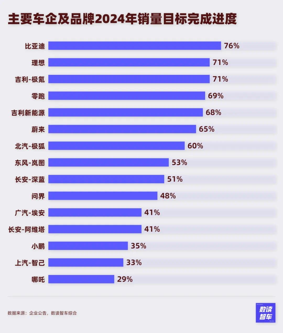 问界、阿维塔、埃安、小鹏、智己、哪吒的进度尚未过半,可能无法完成年度目标。