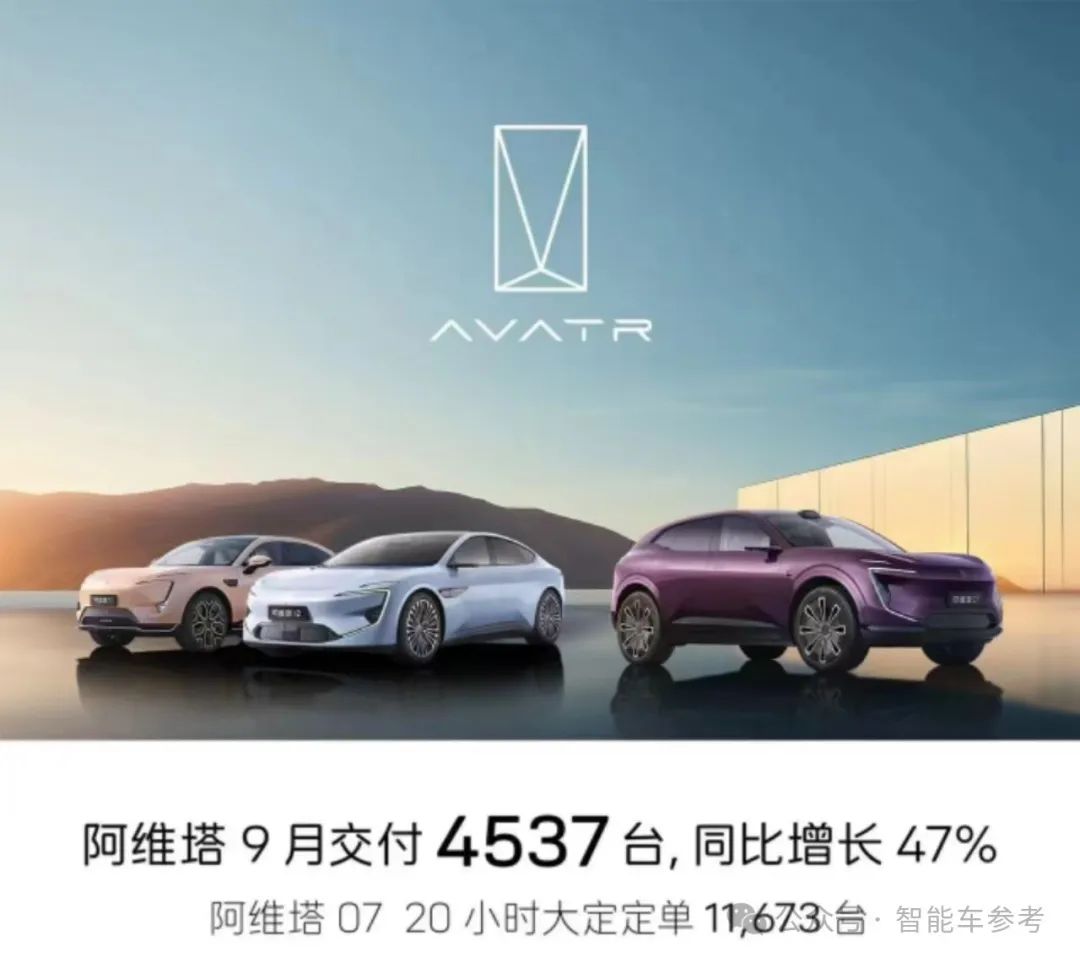 长安转型成绩持续亮眼,旗下三大新能源品牌,深蓝汽车9月共交付22709辆车,长安启源交付11615辆车,阿维塔交付4537台。