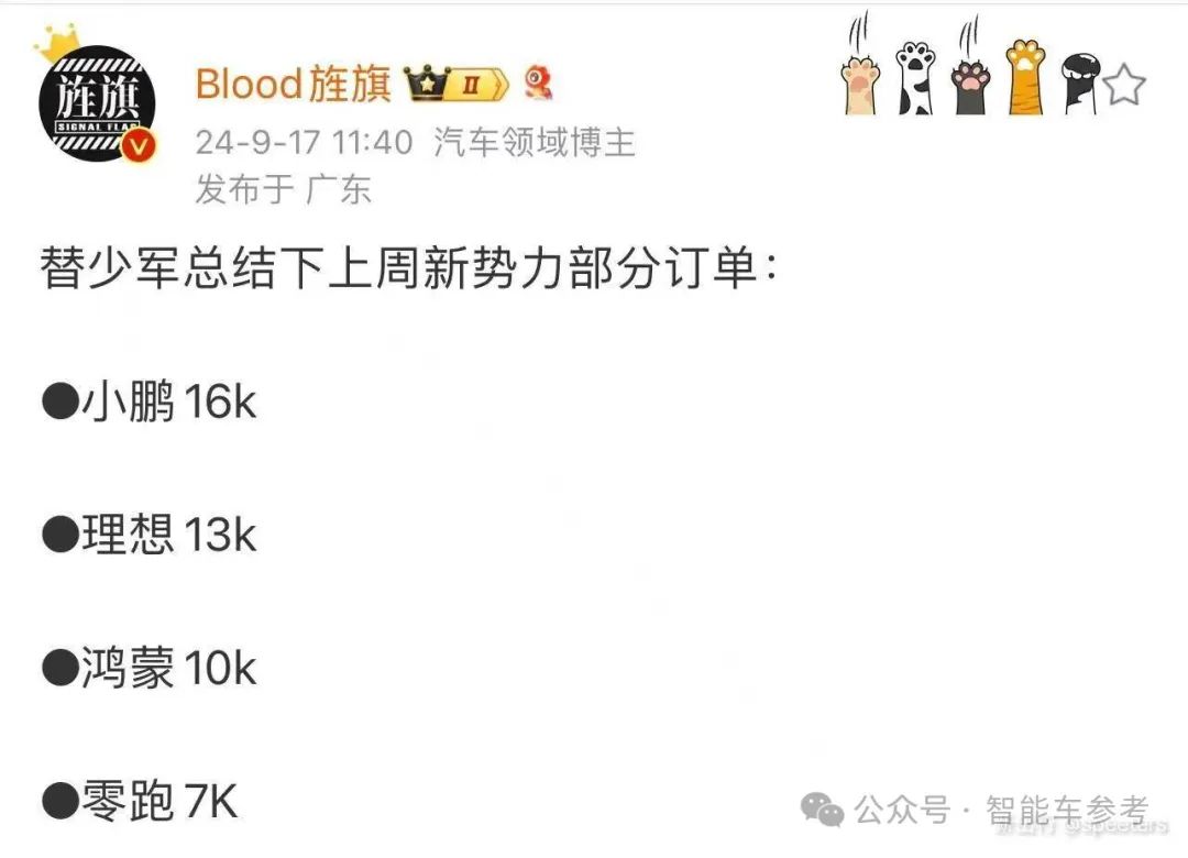 有博主爆料,小鹏最新周订单数据超越了理想,以后谁来发布周榜,有变数了doge。