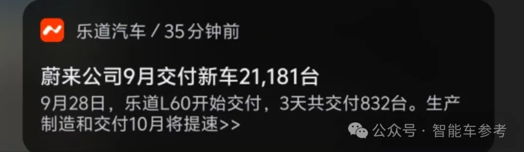乐道L60在9月28日才开启交付,9月交付的832台并未计入其中。
