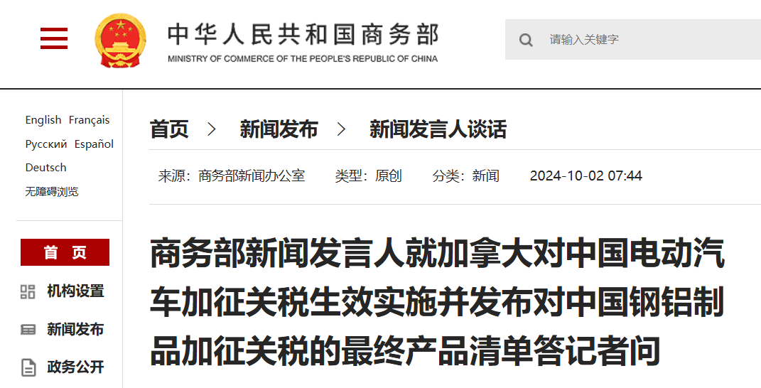 IT之家 10 月 2 日消息,根据加拿大此前发布的公告,加对自华进口电动汽车加征 100% 附加税于 10 月 1 日正式生效。