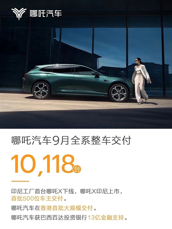 快科技10月3日消息,日前,我们于哪吒汽车官方了解到,哪吒9月份共交付10118辆新车,去年同期为13211辆,同比下降23.41%。今年1-9月哪吒汽车累计销量为85908辆。
