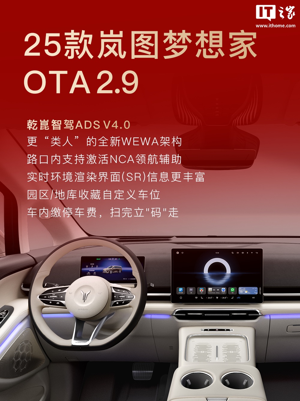 IT之家 1 月 29 日消息,岚图汽车官方今日发布了新春 OTA 速览,公布了旗下车型后续更新计划,覆盖岚图知音、岚图追光、岚图 FREE、岚图泰山、岚图梦想家等。