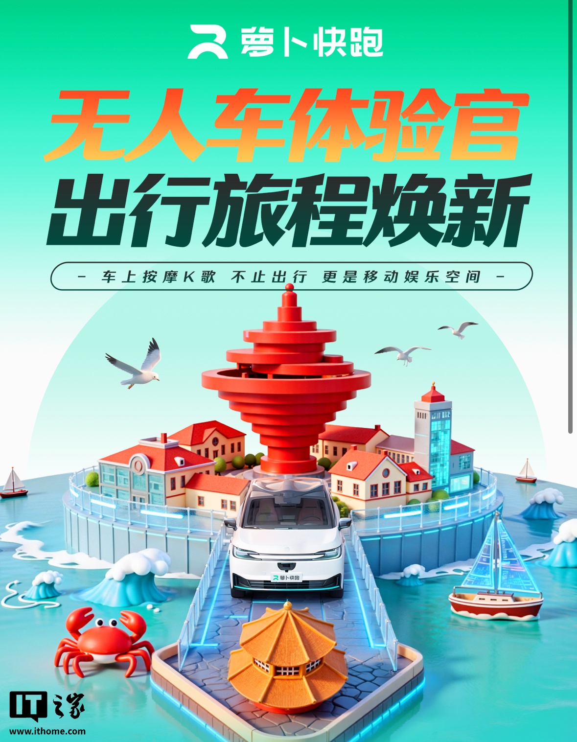 据官方介绍,相应无人车可选极狐车型 / 萝卜 06 两种车型,提供“商务级超大空间座舱”,拥有 135 度智能十点按摩电热暖座,支持畅听 VIP 歌曲。用户可以在萝卜快跑 App 或小程序中登陆百度账号召车,车辆到达上车点时,用户将收到短信提醒。