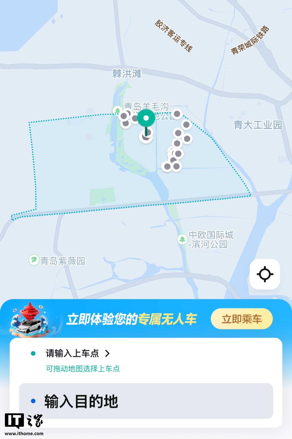IT之家注:根据萝卜快跑小程序显示的运营区域,以其中“青岛羊毛沟花海湿地公园”作为起点,相应区域距离城阳市区约 10 公里、距离胶东机场约 22 公里、距离附近青岛地铁 8 号线车站约 13 公里、距离青岛市区(五四广场)约 43 公里,有兴趣体验的用户应提前合理安排时间前往。