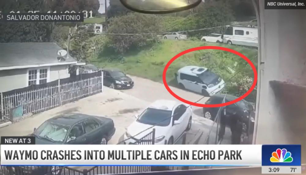 圣莫尼卡事故两天后,在洛杉矶道奇体育场附近,一辆由人类安全员操控的Waymo车辆因超速失控,撞上了路边多辆停放的汽车。