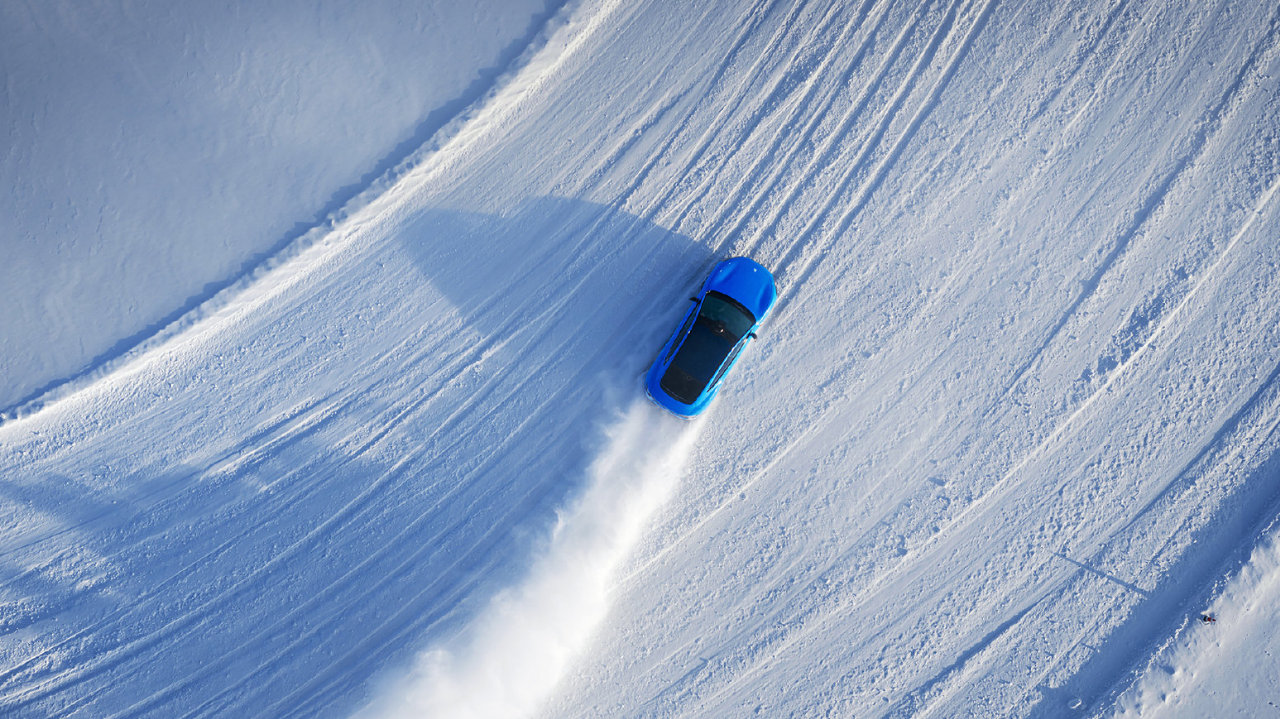 连续转弯 & 飞坡落地:在快速路匝道、城郊道路遇到大曲率连续弯道且路面积雪时,可能由于转向角度较大,轮胎抓地力较低导致车辆发生甩尾;在车速较快行驶中,突遇大起伏坡道,例如公路和桥梁交接处,此时车辆易发生短暂腾空,当车辆腾空再落地时,可能由于悬架支撑不足和车轮扭矩调整不及时,导致车辆失控或甩尾;新一代 SU7 在冰雪螺旋弯道中展现出稳健的连续过弯能力,车辆行进方向精准、稳定、可控。并且在经过飞坡后安全贴地,快速恢复车身姿态,保持平稳行驶。