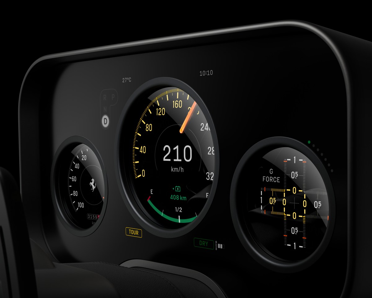 Ive在苹果公司的工作以简洁极简主义为核心理念,因此在Luce内饰中看到众多按钮,确实令人感到有些意外。当我初次得知Ive负责设计时,原以为法拉利会将所有控制功能都交给触摸屏来处理。因此,看到车内配备了相当数量的物理控制按钮,着实令人感到振奋。当然,所有屏幕都采用了类似iPhone或iPad的圆角设计,Ive的设计风格依然清晰可见。
