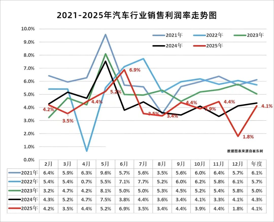 2024年价格血拼,2025年智驾内卷,2026年卷什么?价格战与拼智驾仍是2026年的核心议题,但是竞争焦点必须换挡——持续三年的恶性竞争已让行业遍体鳞伤,市场撕裂感愈发明显——经销商与供应商大面积亏损,行业利润率连续四年低于工业制造平均水平,盈利压力濒临临界点。