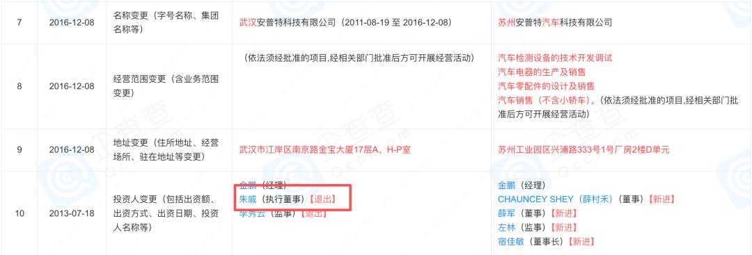 2009年朱威从康明斯离职创业,在武汉成立安普特科技,从事汽车配件业务。后于2013年将公司转卖,从安普特退出。