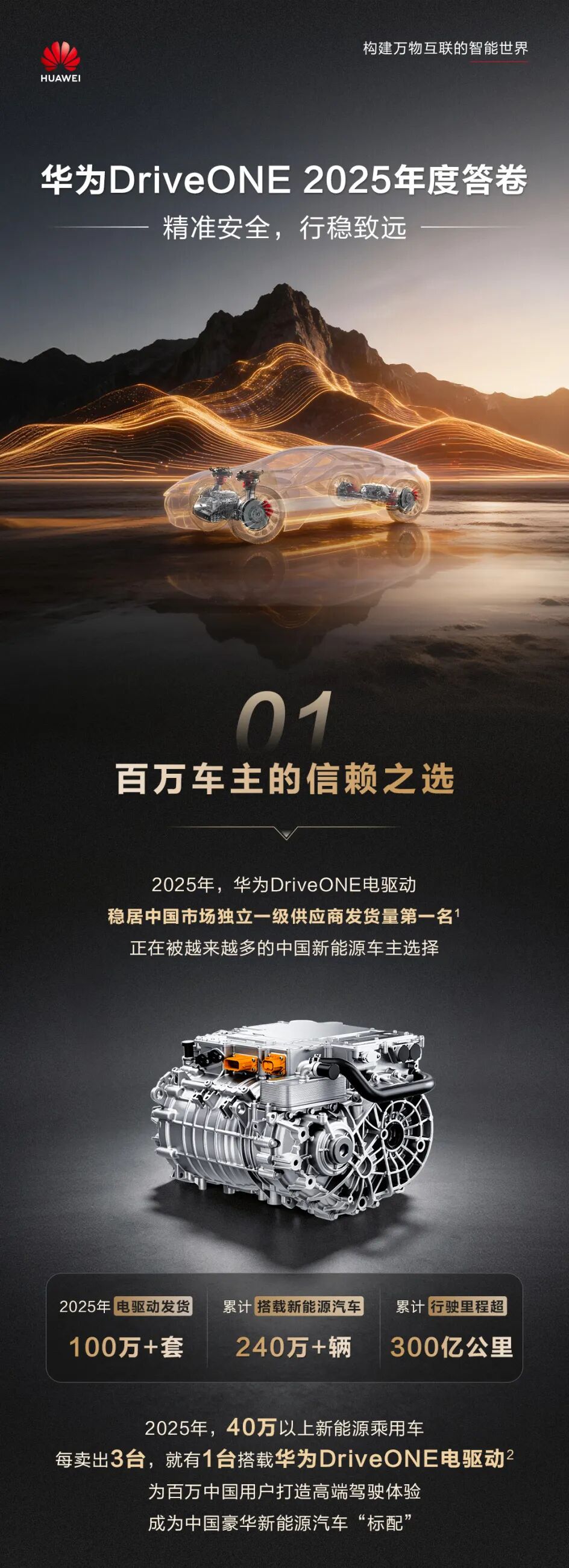 《华为 DriveONE 预计 2025 年当年动力总成发货达成 100 万套,全面进入年发货百万时代》