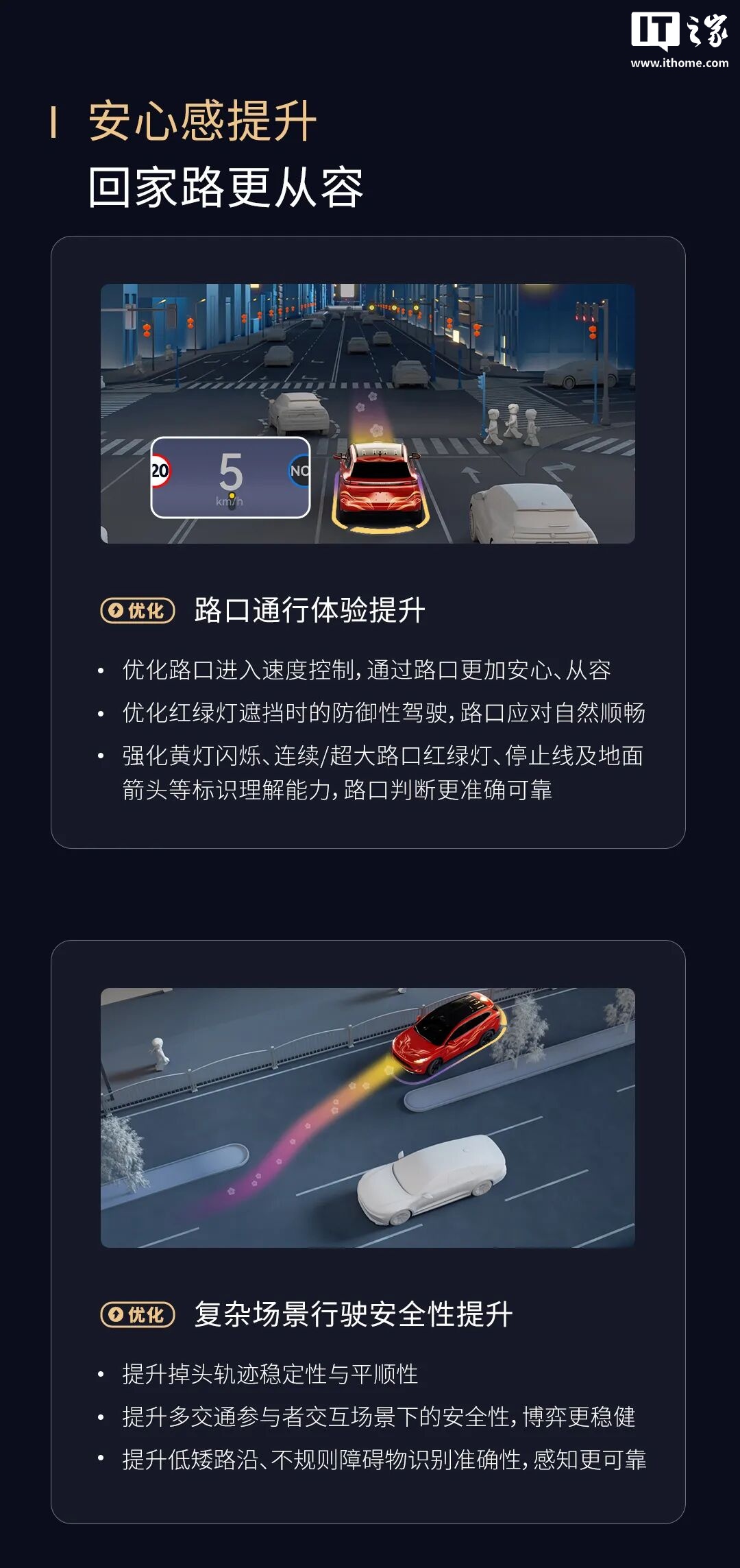 强化黄灯闪烁、连续 / 超大路口红绿灯、停止线及地面箭头等标识理解能力,路口判断更准确可靠。