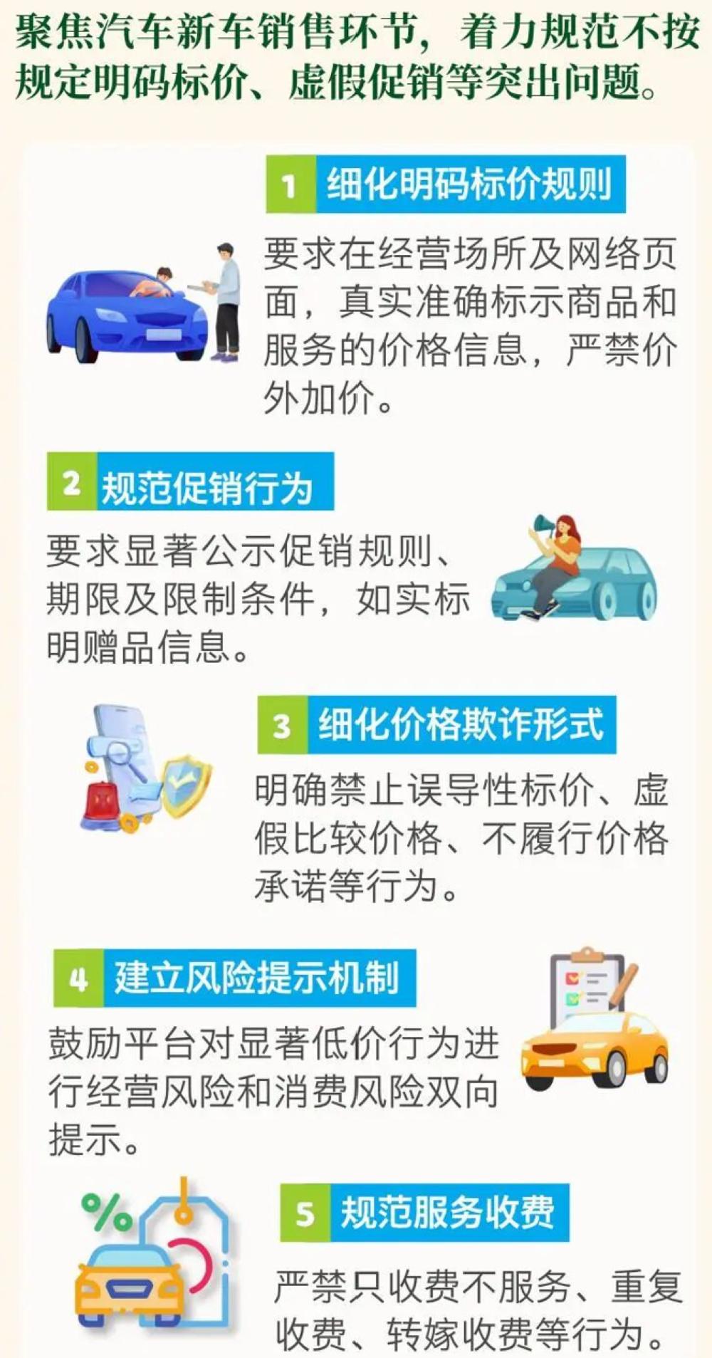 对于汽车销售企业,《指南》中提到要明码标价、规范促销与赠品、禁止违规收取服务费、禁止低价倾销等要求。
