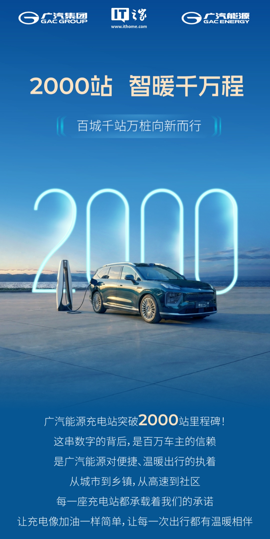 IT之家 2 月 12 日消息,广汽集团今日宣布,广汽自营充电站正式达成 2000 站里程碑(充电站 2002 座)。