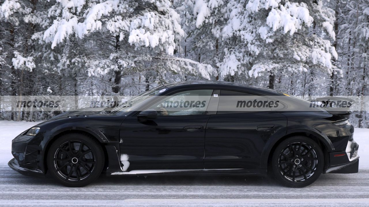 动力方面,新车双电机输出预计将超过 Taycan Turbo GT 的 1019 马力,然而相比单纯提升功率,强化空气动力学设计更显重要。谍照显示,前保险杠经过重新设计,前唇尺寸更大,用以增强前轴下压力。前杠两侧翼片以及尚未定型的轮拱进气口,暗示空气动力学尚有优化空间。