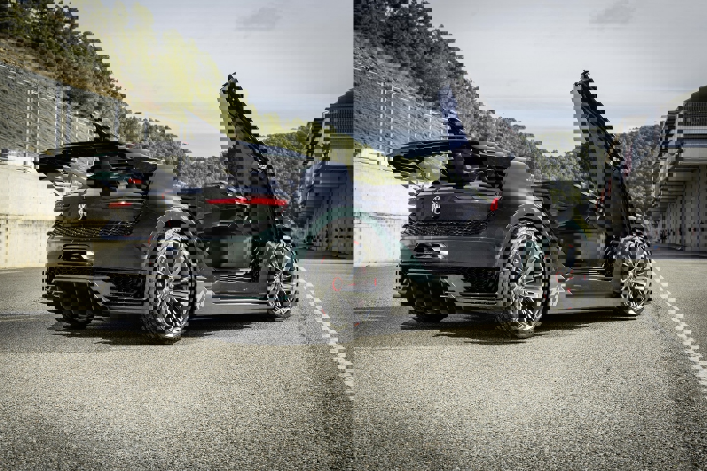 外观方面,高尔夫 GTI Roadster 基于 MQB 架构打造,车高仅为 42.9 英寸(1090 毫米),仅比一级方程式赛车略高;车头保留了经典的 GTI 元素,通过碳纤维叶片贯穿侧裙延伸至车尾;独特的剪刀门设计与外扩的轮拱赋予了车辆强烈的肌肉感。