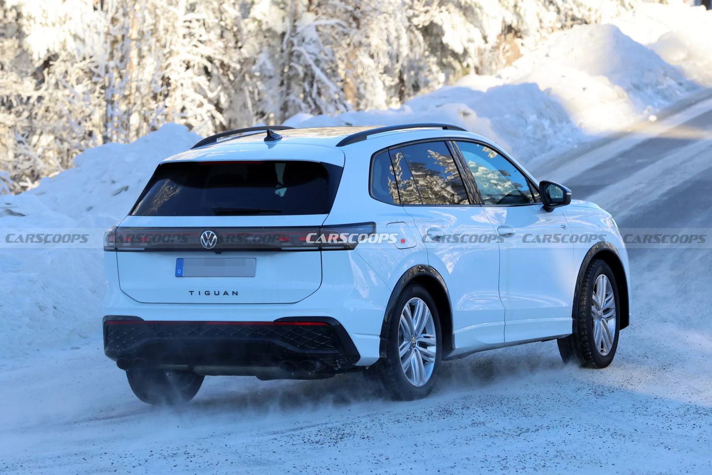 外观方面,这辆测试车几乎处于完全无伪装状态,整体设计沿用现款 Tiguan R-Line 方案,最显著的特征位于车尾采用 R 系列标志性的四出排气管,以及包围在周围的亮黑色后扩散器装饰件。