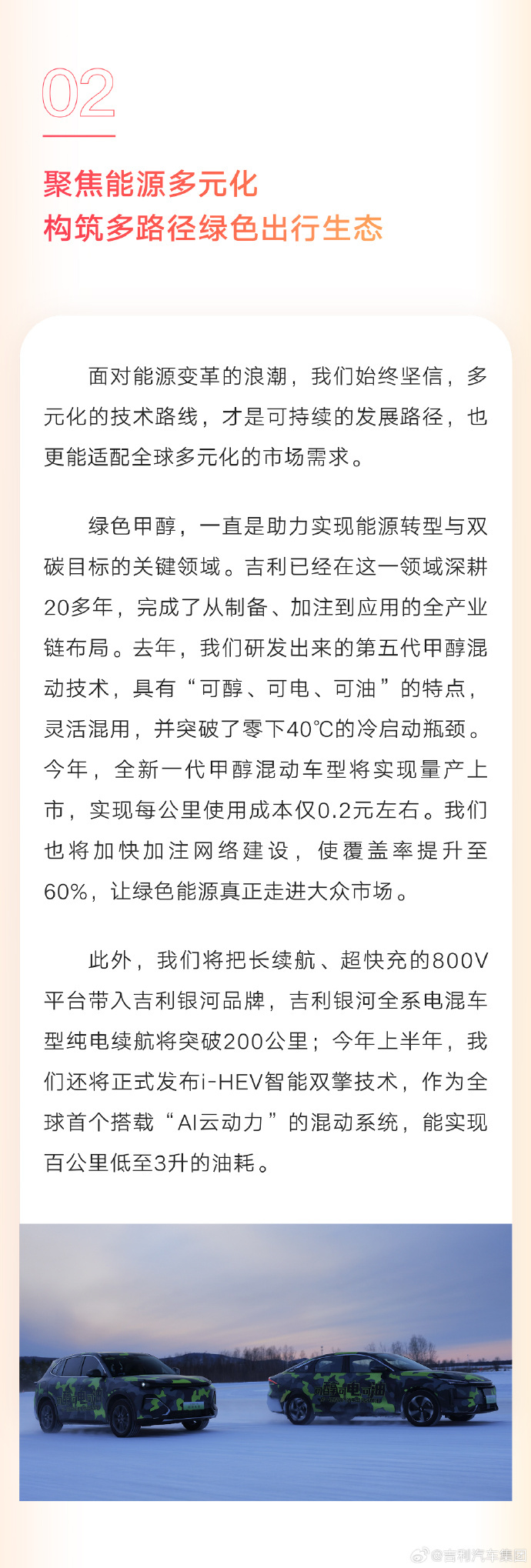 凤凰网科技讯 2月24日,吉利汽车集团在新春寄语中提到,今年,全新一代甲醇混动车型将实现量产上市,实现每公里使用成本0.2元左右。同时将加快加注网络建设,使覆盖率提升至60%。