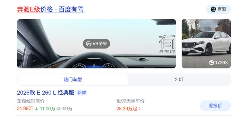不信咱们看个数据,相关媒体了解到,多家奔驰 4S 店 E 级多款车型优惠高达 11 万元,最高优惠高达 13.5 万,其中 2026 款 E 260 L 经典版优惠后价格为 31.99 万元(指导价 42.99 万元)。奔驰 GLB 最高优惠额度达 12.9 万元,最低起售价格已降至 14.49 万元。