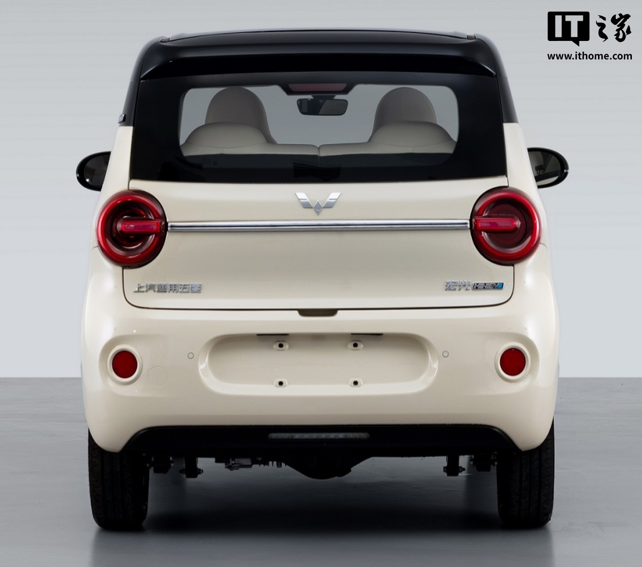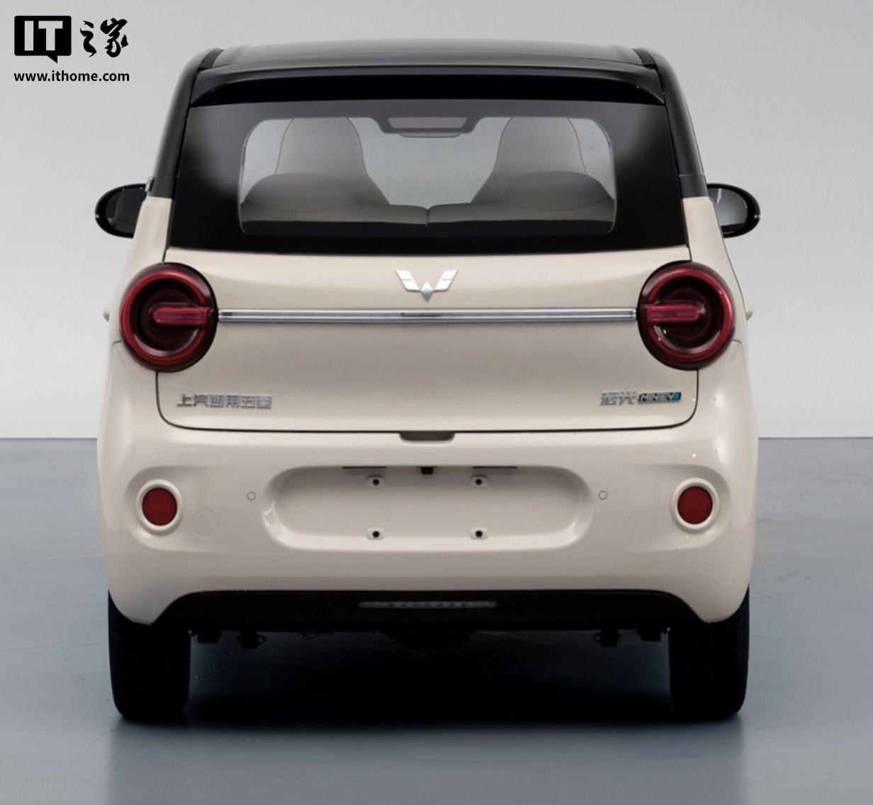从图中可以看到,新版五菱宏光 MINIEV 最大的变化就是圆形车灯,搭配黑色悬浮车顶,尾部也采用了圆形尾灯设计。