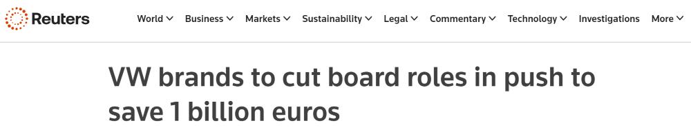 路透社报道大众汽车核心品牌集团拟削减董事会席位