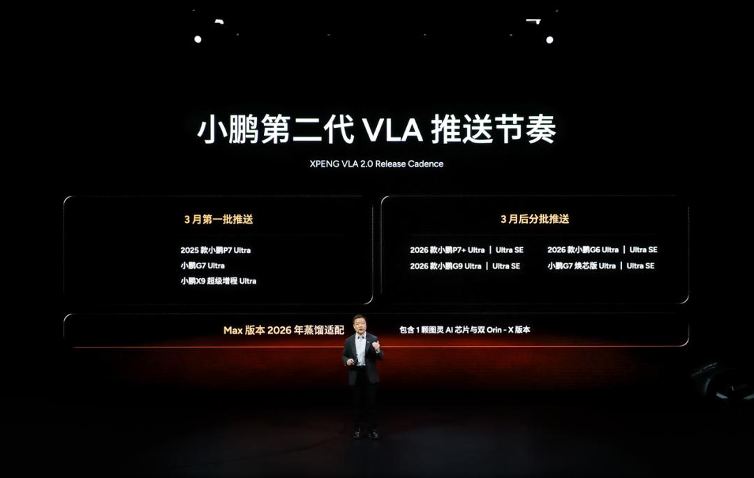 按照小鹏节奏:3 月份将会给 P7、G7、X9 Ultra 车型率先推送第二代 VLA,其他车型之后陆续跟进。