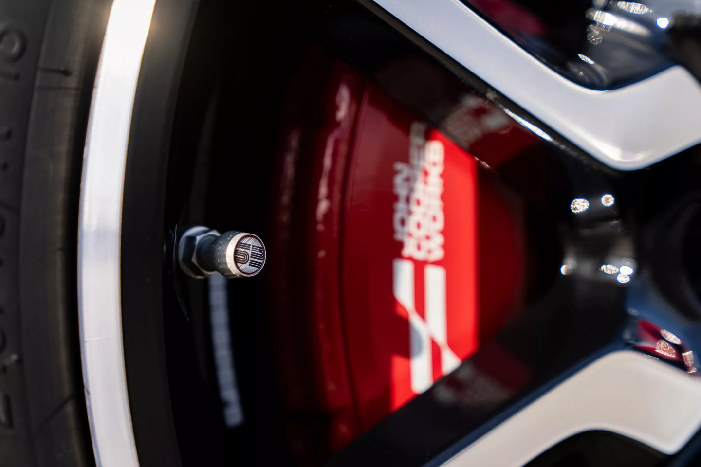 外观方面,该车采用了惹眼的辣椒红(Chili Red)车漆,车身贯穿有白色拉花。车侧印有醒目的白色“52”数字拉花,同时 C 柱贴有“1965”专属贴纸,车顶则配备了全景玻璃天窗。