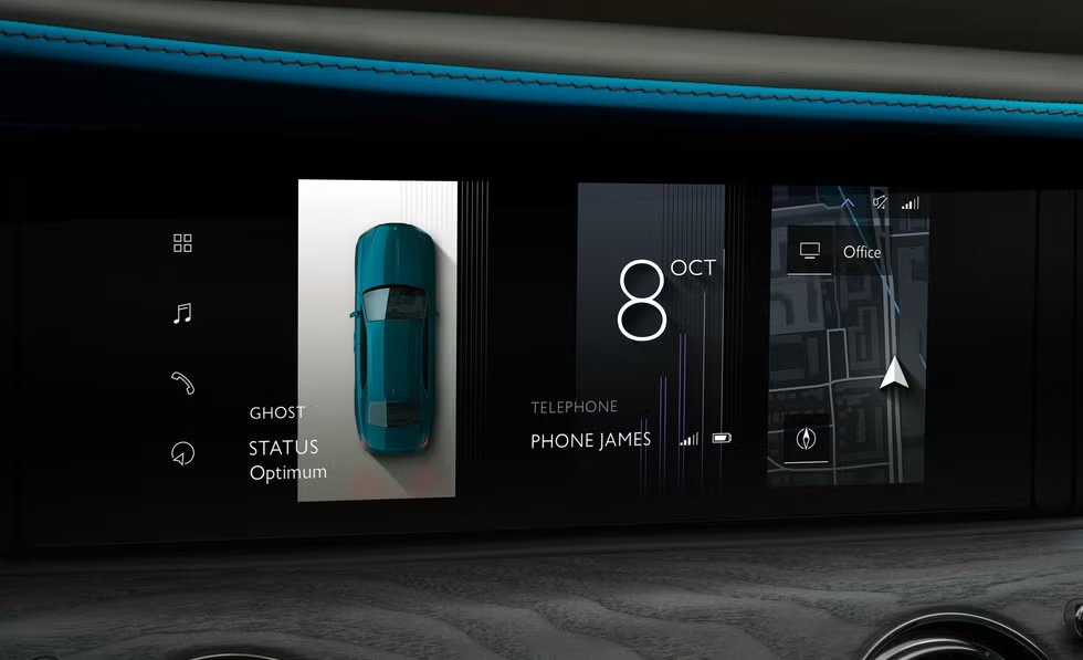 内饰方面,古思特配备了最新的 Spirit 信息娱乐系统,显示在仪表盘宽幅玻璃面板后的中央屏幕上。乘客侧的“发光面板”经过重新设计,模仿了“延时天体摄影”的效果,购车者可以通过定制选项添加个性化元素。此外,定制选项还允许车主选择数字仪表的颜色,以匹配车辆的内外部色彩。仪表盘上的“时钟柜”内置了一个模拟时钟和发光的不锈钢幻影装饰物。