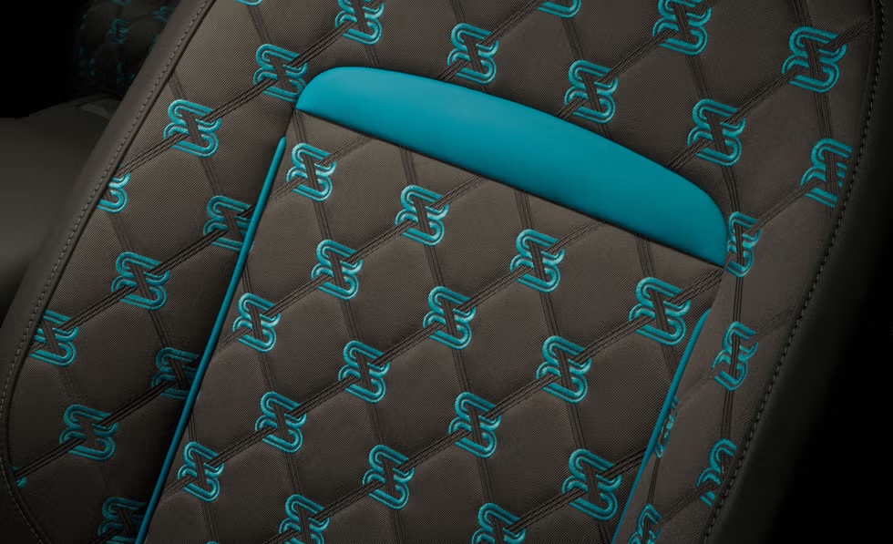 新车引入了一种新的开孔木饰面,称为灰色染色白蜡木,含有微小的金属颗粒,营造出闪亮效果,并使用了新型竹制雷龙织物“双重斜纹”,提供淡紫色、巧克力色和黑色三种颜色可选,缝线颜色有 51 种选择。