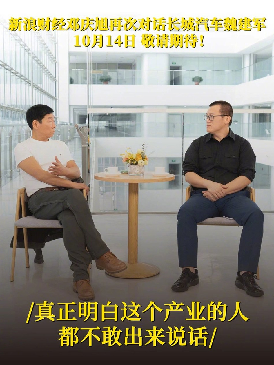 IT之家 10 月 9 日消息,新浪财经 CEO 邓庆旭昨天上午放出了对话长城汽车董事长魏建军第二季的预告视频,魏建军此次同样谈到了自己对汽车行业的看法。